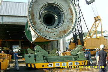 발전기 Rotor Removal System 발전기 Rotor를 발전기에서 원하는 위치까지 많은 인력을 들이지 않고 쉽고 안전하게 인출 및 인입 하는 장비2.5MW-22ML-4.5MH, 사용 하중 75ton