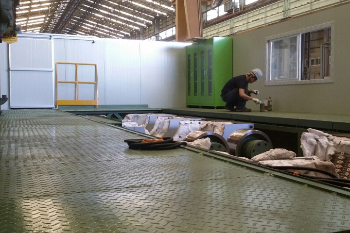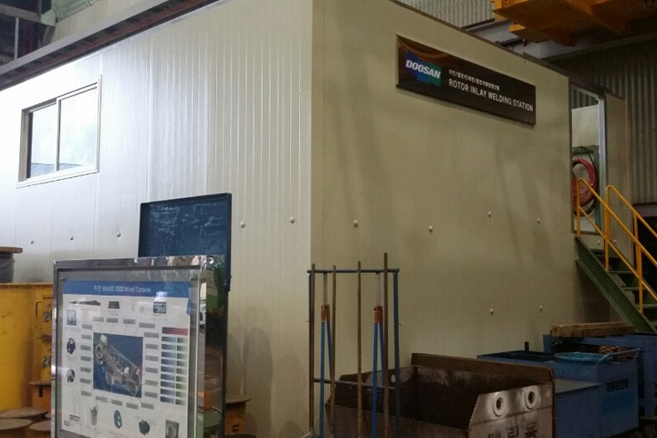 Welding Station 안정적인 용접을 위해 room 을만들고 내부에 turning roller 및 기타 장비를 일체형으로 제작한 작업장8MW-15ML-5.0MH, 사용 하중 50ton