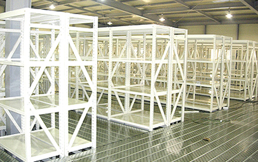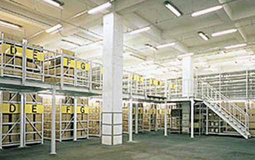 중량보관고의 Rack Frame(Rack Type)을 이용한다던가 독립적으로 H-Beam(Pole Type)을 사용하여 Main-Beam, Sub-Beam의 철골을 견고하게 연결하여 그위에 Floor Deck를 깔고 화물의 보관량을 높인다.