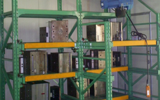 특수베어링을 사용하여 선바자체를 인출하는 방법으로 금형등 중량물을 수납관리하는데 있어 매우 경제적이다. 넓은 통로나 스페이스가 필요하지 않다.